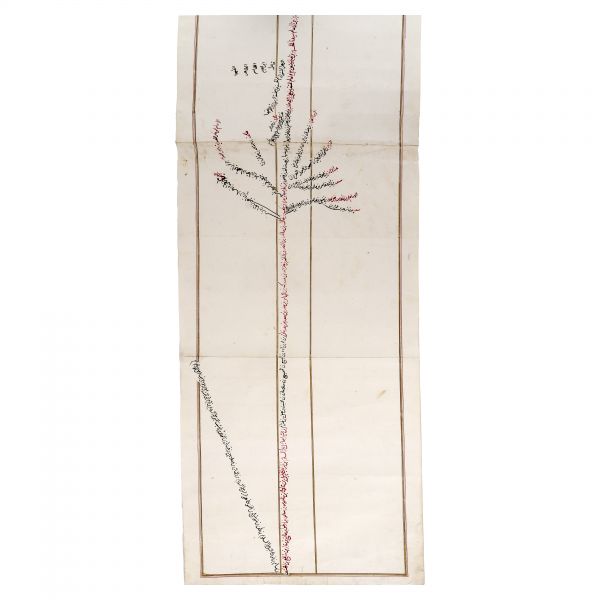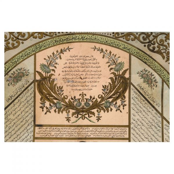 "70 şube, 4 kapı 40 makam" üzerinden imanı açıklayan Osmanlıca-Arapça metin. Ortasında iman ağacını temsilen hurma ağacı (nahl) çizimi vardır. Ağaçta kalbin durumu ve imanın amelde, ilimde ve kalpteki gerekleri listelenmiştir. Ağacın kökünde yazan "tasdik" imanı oluşturan en temel unsurdur. Kenarlardaki dört bölümde 10´ardan 40 kapı açıklanmıştır. Kapılar "şeriat, tarikat, hakikat ve marifet"ten müteşekkildir. Üstteki kemerdeki başlıkta şu yazılıdır: "İşbu mersûm olan şecere-i nahliyeye şebih Şecere-i Îmân ve semeresi olan yetmiş dokuz şubesi ve onu muhâfız olur. Şol ebvâb-ı erbaa-i ilâhiye ki şeriat ve tarikat ve hakikat ve marifetdir; ve her yerinde on makam, mecmûu kırk makam olur. Câmiu´l-Usûl kitab[ın]da tafsîli kırk bine bâliğ olur. Hattâ beyne´l-ekâbir makbul ve mergub ´hey´etü´l-kalb´ ismiyle müsemmâ bir levha-i acîbedir."