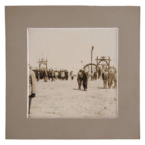 1904 yılında ulaşılan Maan ile Hayfa arasındaki hattın açılışı için seyahat eden heyetin güzergâhının fotoğrafları. Açılış törenindeki yüksek rütbeli yetkililerin ve geçit yürüyüşünün fotoğrafları yanında yöreden canlı manzaralar da fotoğraflanmıştır. Bir karede uzaklaşan trenin arkasından gülüşerek koşuşan yerli halk görülüyor. Bugün Ürdün'de kalan Maan ile Filistin'deki Hayfa Limanı arasındaki hat, bölgenin zenginliği ve Osmanlı ordusunun lojistiği için hayatî önemdeydi. Maan-Hayfa arası hat 1904-1905 yılında tamamlanmıştır. Hicaz Demiryolu'nun resmî açılışı 1908 yılında bizzat Sultan Abdülhamid tarafından yapılmıştır. Buradaki hattın yerel açılış töreni bu tarihten önce olmalıdır.