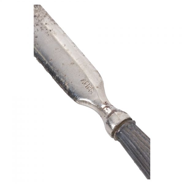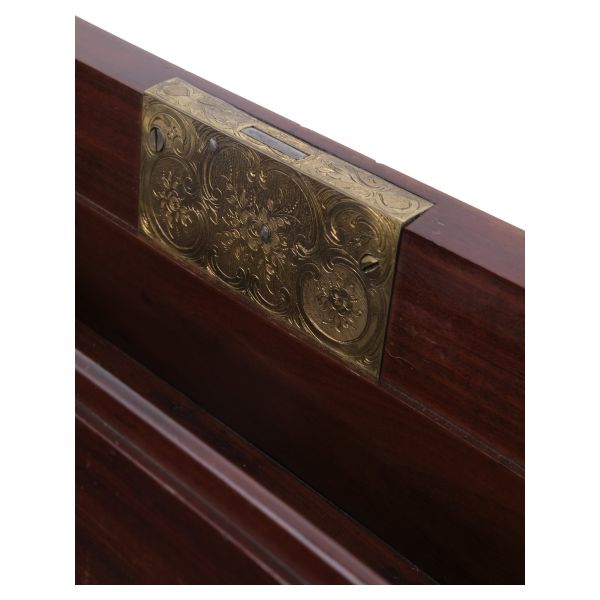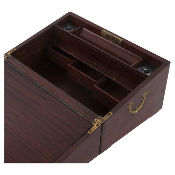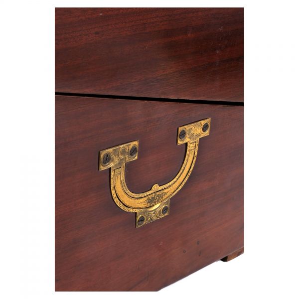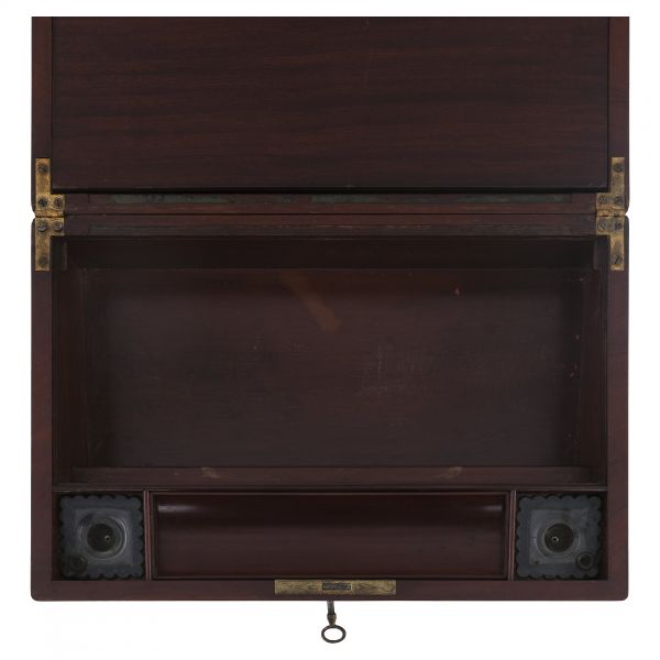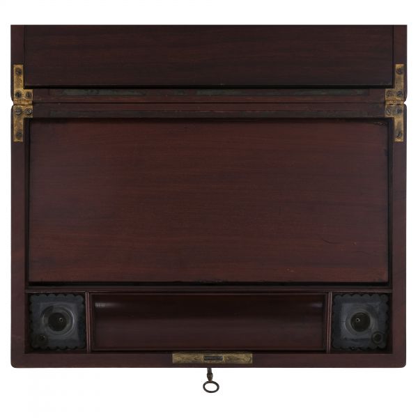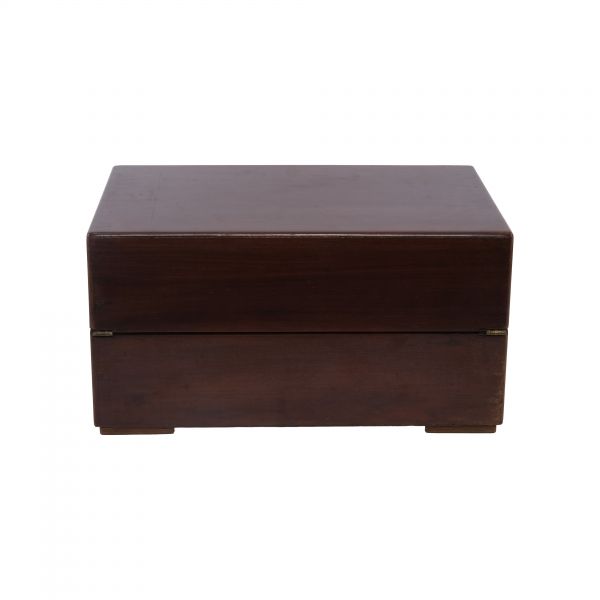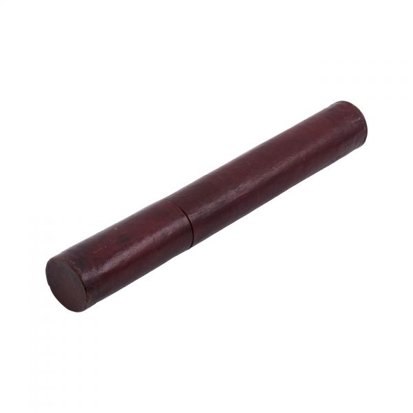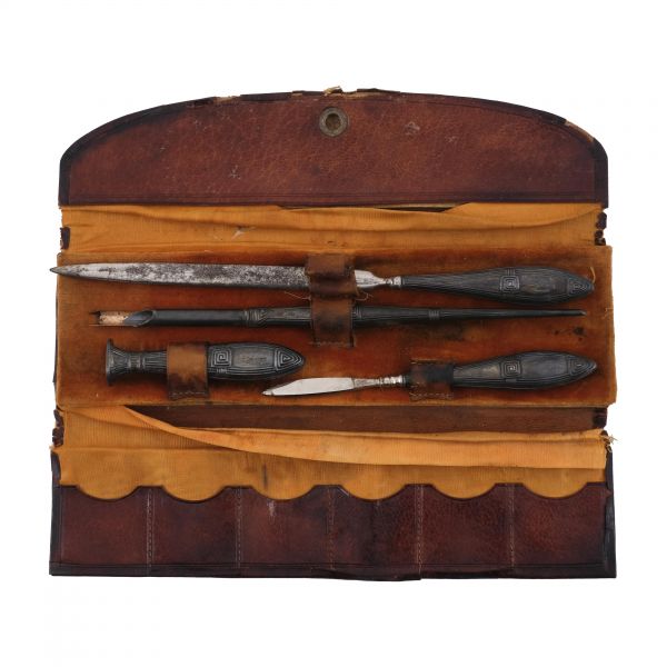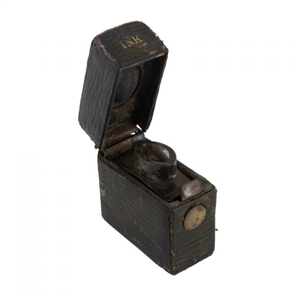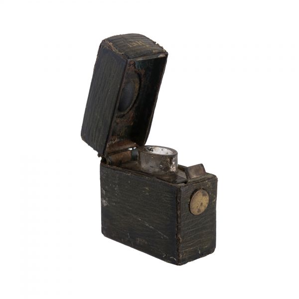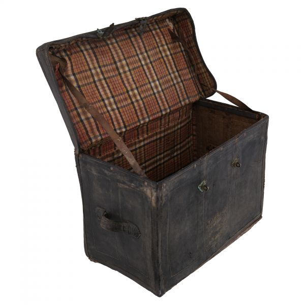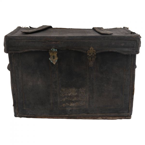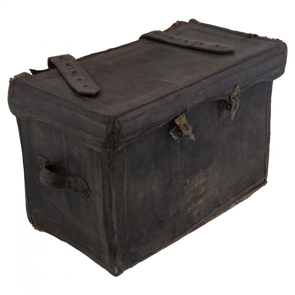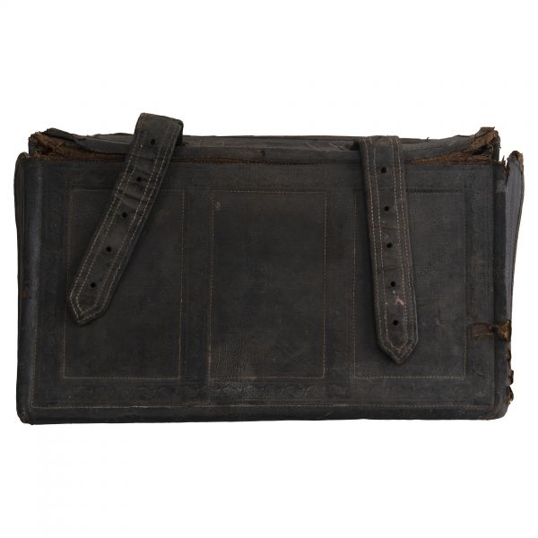 Yanlardan iki deri kulplu, tokalı ve arkadan iki deri kemerli. Ön yüzünde üreticisi, imal tarihi, seri numarası elle işlenmiştir. Son iki satırda kısa bir dize yazılıdır.