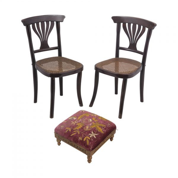 Her iki sandalyenin altında Viyana merkezli mobilya mağazası "Jacob & Josef Kohn"un mağaza etiketi mevcuttur. Minderin altında ise "Au Bon Marche" (Bonmarşe) etiketi yer almaktadır.