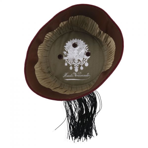 Feslerden birinin iç astarında, Osmanlı devlet arması görseli ve üretici mağaza ismi (Haute Nouveauté) mevcuttur. Diğer fes kalıpsızdır ve herhangi bir üretici ibaresi bulunmamaktadır. Her iki şapka da Londra merkezli yüksek kaliteli şapka üreticisi Lincoln Bennett & Co. tarafından üretilmiştir. Şapkaların astarlarında ve iç bantlarında üreticinin ve İstanbul mümessilinin (Georges F. Collaro/Jorj F. Kollaro) mağaza damga ve etiketleri yer almaktadır. Siyah şapkada adres Constantinople olarak belirtilmişken, gri şapkada "Stamboul" ve "İstanbul" şeklinde belirtilmiştir. Siyah şapkanın iç bandında "A", siyah şapkanın iç bandıydaysa "A-S" inisiyalleri yer almaktadır.