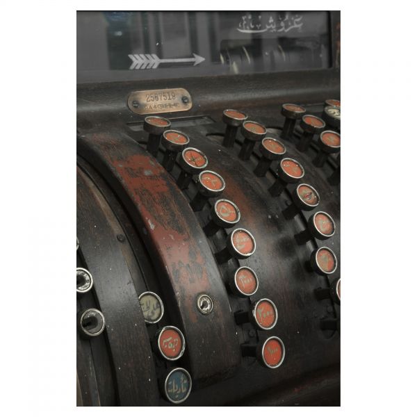 Yazar kasanın bütün tuşları Osmanlıca, ayrıca işlem yapmak için kullanılan tuşları da "veresiye", "tadiyat" ve "kuruş" gibi Osmanlıca ifadelerden oluşmaktadır. Yazar kasanın klişe merdanesinin bir yüzünde Osmanlıca "Kalyoncuzade İsmail Hakkı"; diğer yüzündeyse Osmanlıca "Pangaltı Büyükdere Caddesi Numara 134" yazılıdır.