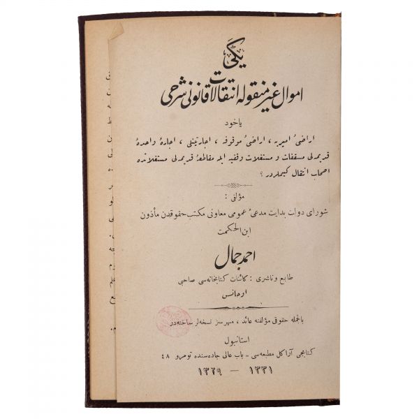 5. Ahmet Cemal Efendi´nin kaleme aldığı, "Yeni Emval-ı Gayrimenkule İntikalat Kanunu Şerhi" başlıklı Osmanlıca kitabı...