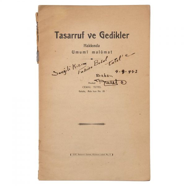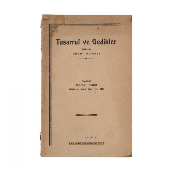 6. Ahmet Cemal Efendi´nin kaleme aldığı, "Tasarruf ve Gedikler Hakkında Umumi Malumat" başlıklı kitabı...