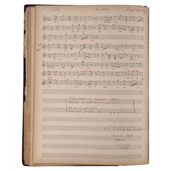 Kitabın ilk ve son sayfasında, Latin harfleriyle yazılmış "Esma" imzası bulunmaktadır. İlk sayfadaki imza 1950 yılında kalemle çerçeve içine alınmış ve şu not düşülmüştür: "Bu kıymetli müzik defteri, aşağıda imzası görünen Sultan Azizin Kızı Esma Sultanındır." Esma Sultan tarafından kullanıl(a)mayan defter, 1950´li yıllardaki sahibi Ziyaeddin Bey tarafından aktif olarak kullanılmış; sayfalarına klasik Türk müziğinden çeşitli beste ve güfteler geçirilmiştir. Ön kapağı Sultan II. Abdülhamid tuğralı, arka kapağı Osmanlı Devlet Arması görselli, kırmızı kadife dönem cildinde. Sayfa kenarları altın yaldızlıdır.