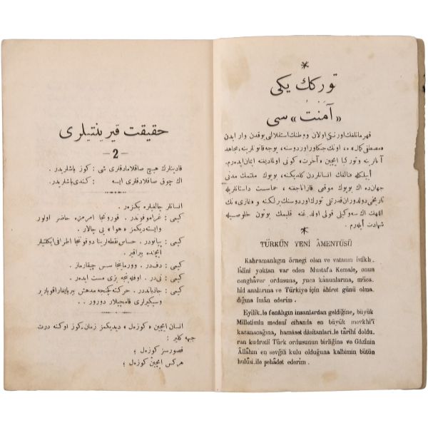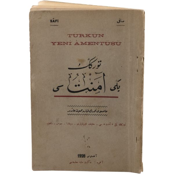Giriş kısmındaki Latin harfli "Türk'ün Yeni Amentüsü" başlıklı yazı nedeniyle, özellikle Atatürk karşıtı çevrelerin hedefi haline gelen ve "Safi" imzasının kim olduğu yıllardır tartışılagelen bu çok nadir eserin ithaflı ve imzalı bir nüshası.