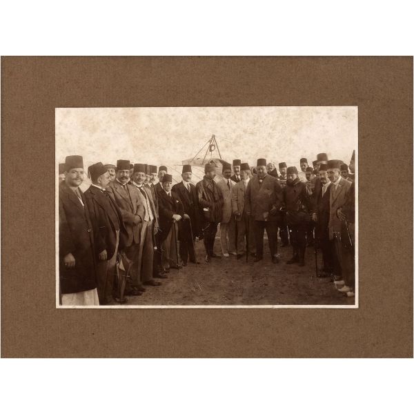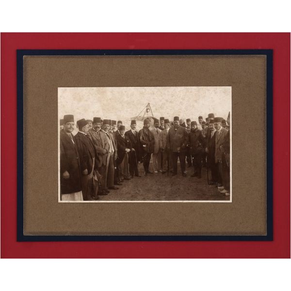 Mustafa Kemal Atatürk, depremden kısa bir süre sonra maiyetiyle birlikte deprem bölgesini ziyaret etmiş, bölgede incelemeler yaptıktan ve ahaliden bilgi aldıktan sonra deprem yaralarının sarılması için ilgili kurumlara talimatlar vermiştir. Müzayedede sunduğumuz fotoğraf, bu ziyaret gününde çekilmiştir.