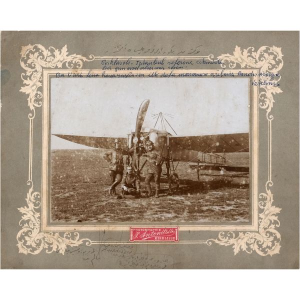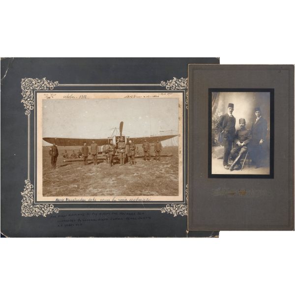 Fotoğraflardan bir diğerinde ise, o dönemde bir çılgınlık olarak nitelendirilen ve Türk tayyarecilerinin başarısız olacağı düşünülen İstanbul’dan Kahire’ye uzanan uçuşu başarıyla tamamladıktan sonra çektirdikleri hatıra fotoğrafı yer almaktadır.