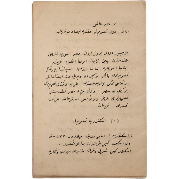 Yıldız Sarayı mâbeyn mütercimlerinden Luis Sabuncu'nun Sultan II. Abdülhamid için hazırladığı ve Antik Mısır heykellerinin anlatıldığı coğrafî-kültürel rapor.