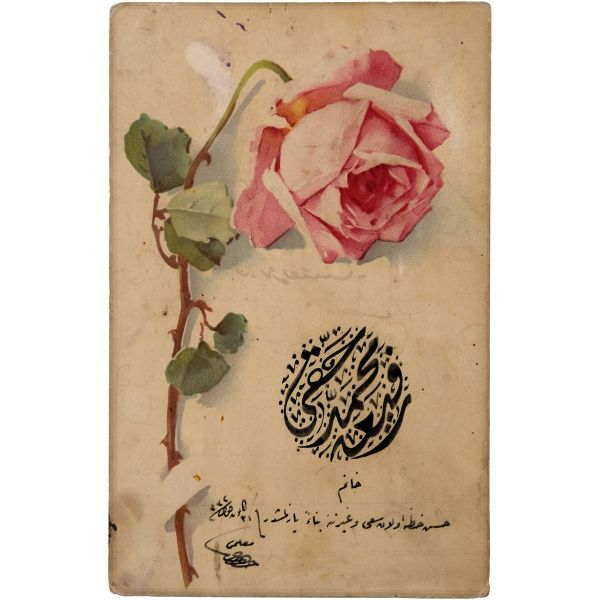 İsmail Hakkı Altunbezer tarafından bir karta hatıra olarak talebesi Refia Hanım’ın ismi celî divani istif şeklinde yazılmış ve altına rika yazı ile not düşülmüştür.