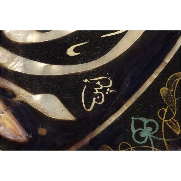 Kıl testere ile kesilerek sedef kakma tekniği ile yapılmıştır. Yazının çevresi Fatma Rikkat Kunt tarafından tezhiplenmiş, ahşap yüzeyi lâke ile kaplanmıştır. Emin Barın´ın oğlunun verdiği bilgiye göre Sedefkâr Vedat Tunca tarafından yapılan bu çalışmadan 4 ya da 5 adet hazırlanmış olup biri de kendi koleksiyonundadır.