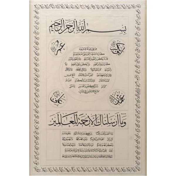 Lafzatullah ve İsm-i Nebi (Allah-Muhammed) müdevver şekilde yazılıdır.