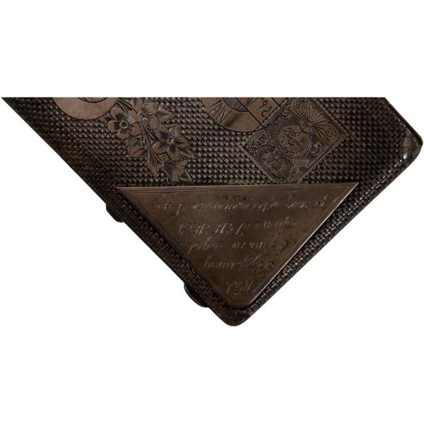 Plaka üzerinde yer alan Rusça yazının tercümesi: "Yoldaş Kuzmin'e, Devrimci Komünist Kızıl Ordu'nun 14. kuruluş yıldönümü gününde, taburumuza sağladığı lojistik destek için."