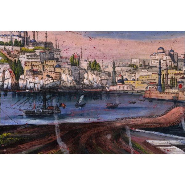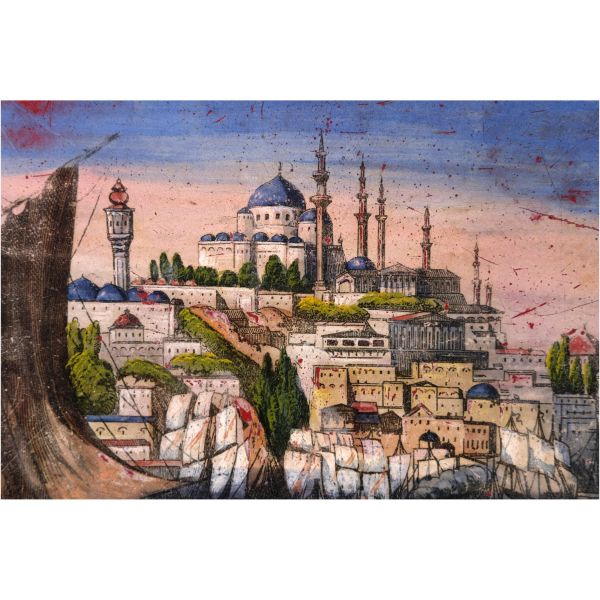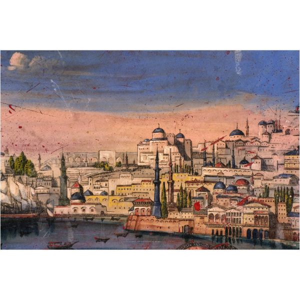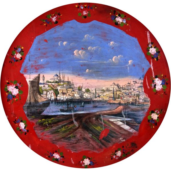 Tepsinin merkezinde yer alan İstanbul tasvirinde; Beyazıt Yangın Kulesi, Süleymaniye Camii, Valens Su Kemeri, Zeyrek Camii ve Hayratiye Köprüsü gibi anıtsal yapılar göze çarpmaktadır.