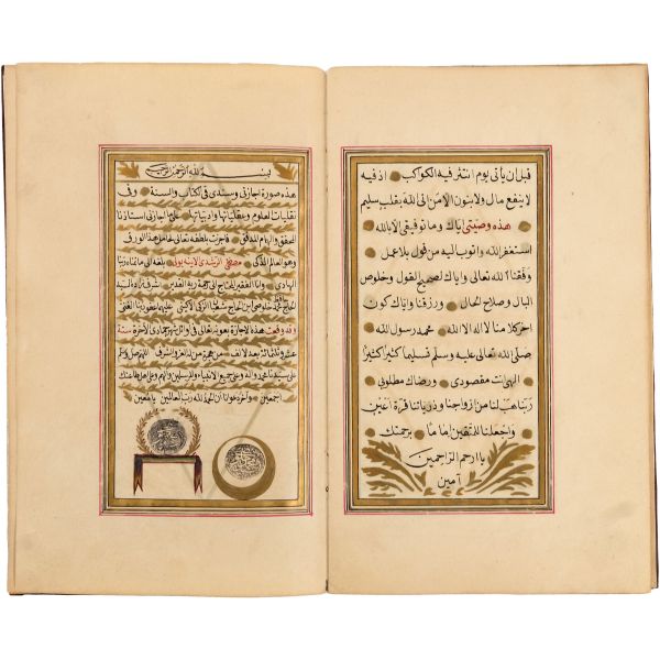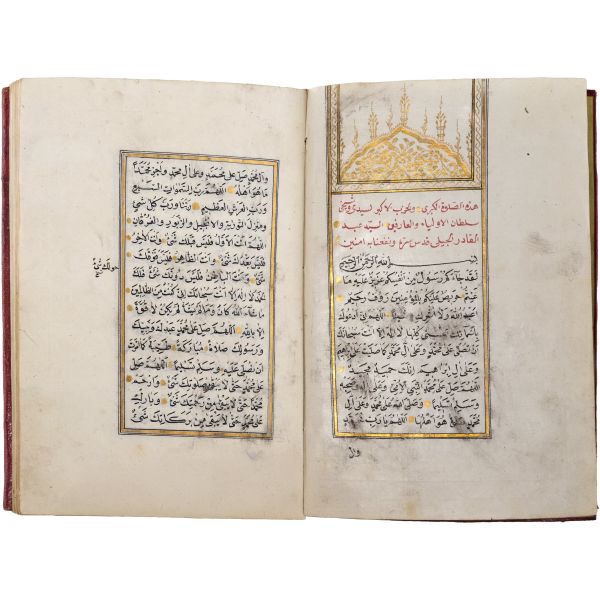 Mıklebli kırmızı deri dönem cildinde. Serlevhalı, altın cetvelli, altın duraklı ve tahrirli. Kırmızı ve siyah nesih yazı ile...