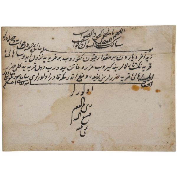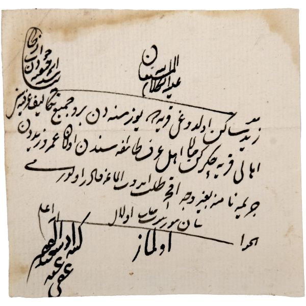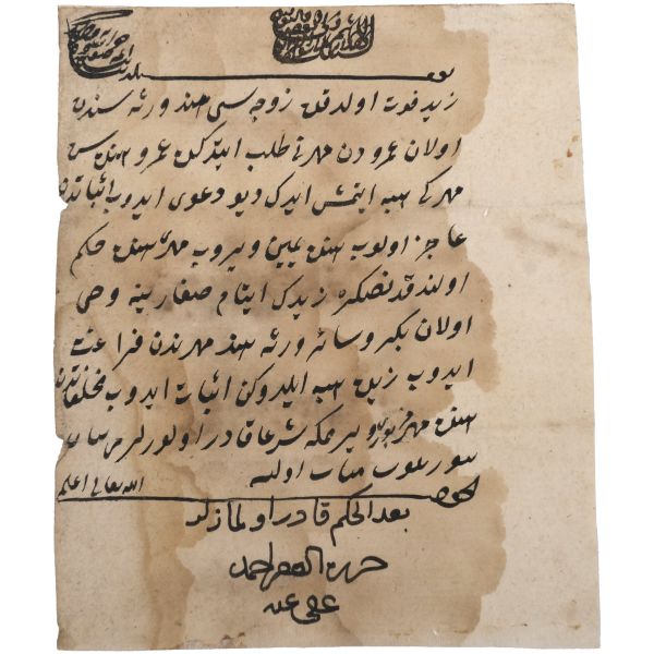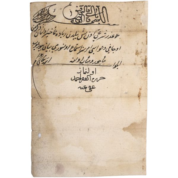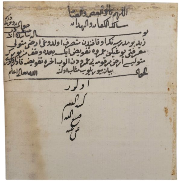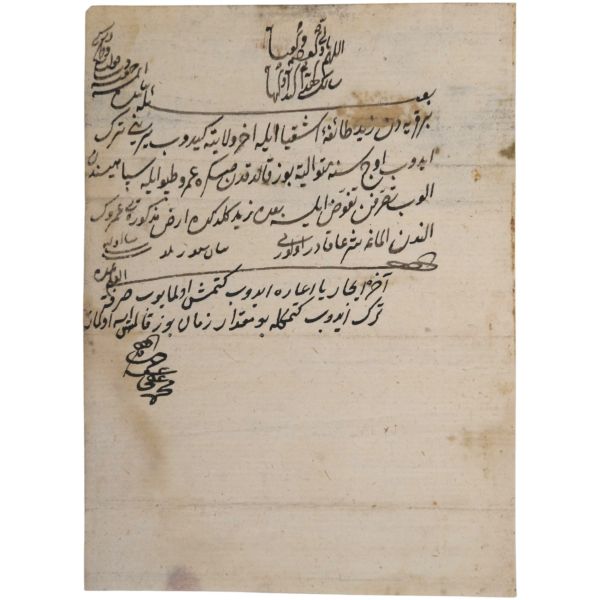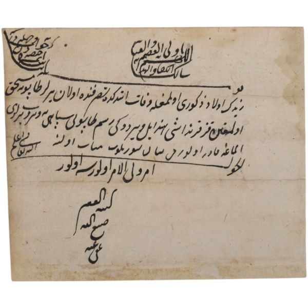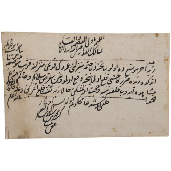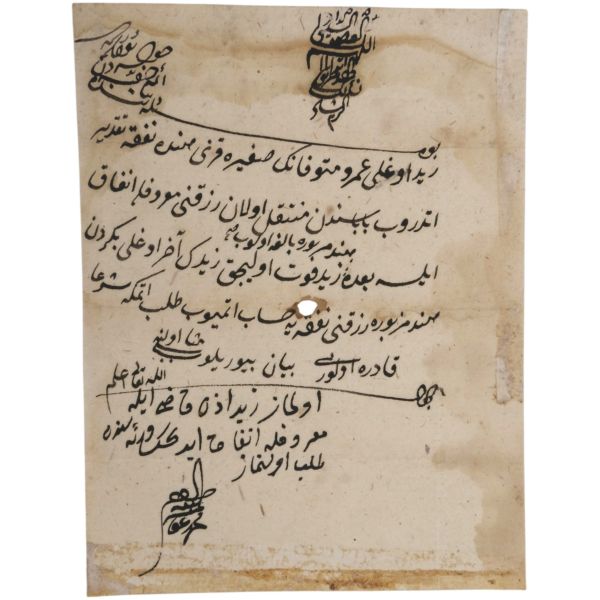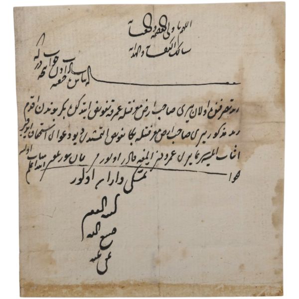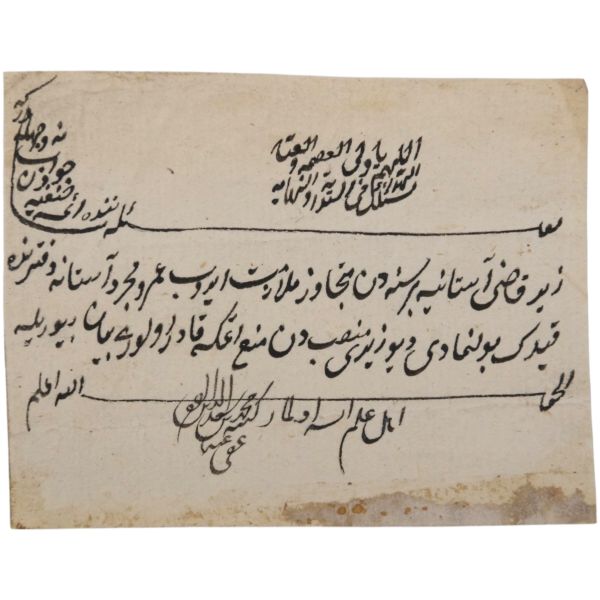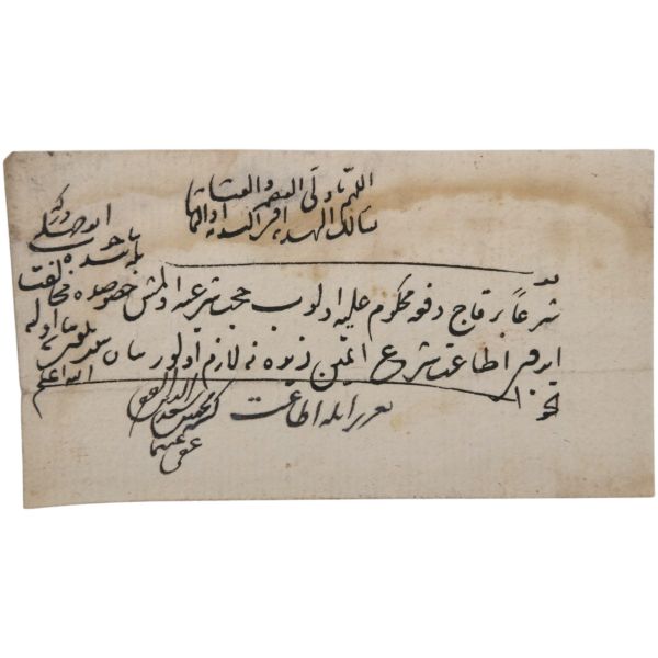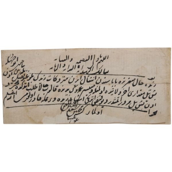 Enderûn-i Hümâyûn Hazine Odası´nda ve Hırka-i Saadet Dairesi imamlığı yapan Hâfız Vahdetî´nin katipliği esnasında yazdığı belgelerden biri.