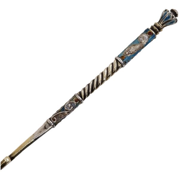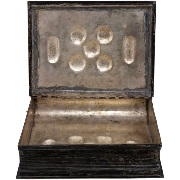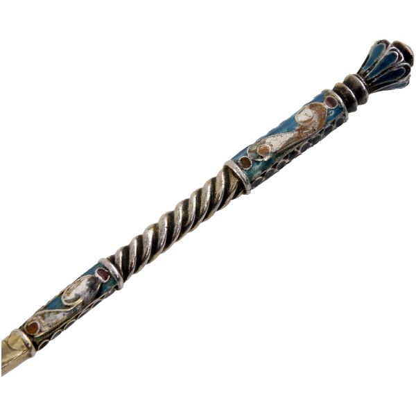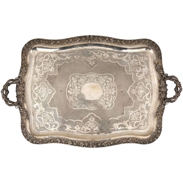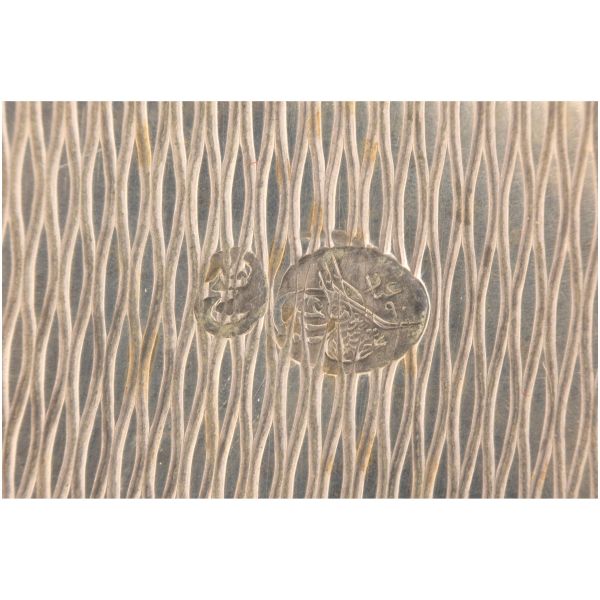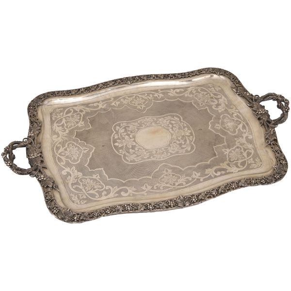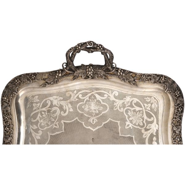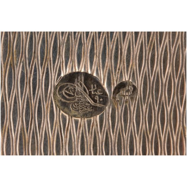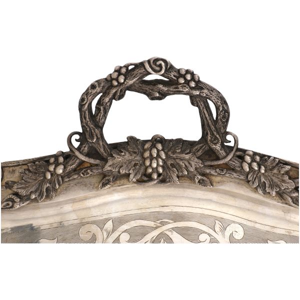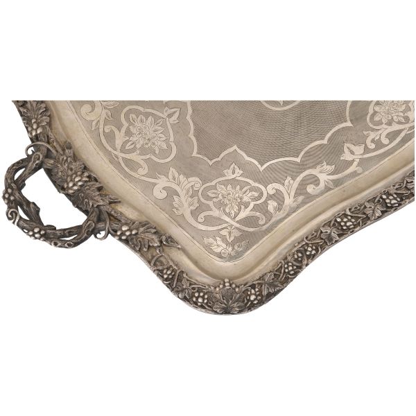 Tepsinin merkezinde iki adet II. Abdülhamid tuğrası ve iki adet "sah" damgası yer almaktadır. Tepsinin kenarındaki üzüm salkımı ve asma detaylarında da tuğra damgası yer almaktadır. Tepsinin altında 4 adet çeşni izi yer almaktadır. Tepsideki "sah" damgasından da anlaşılacağı üzere, eser Osmanlı Darphanesi tarafından denetlenmiş ve ayarı onaylanmış yüksek kaliteli bir gümüş işçiliğidir.