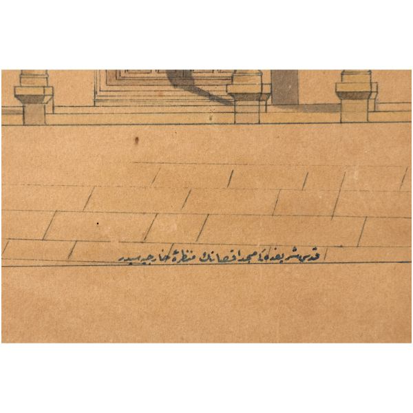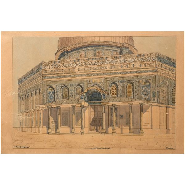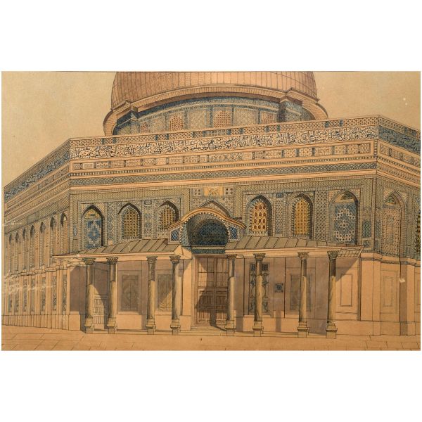 Sultan Mehmed Reşad, cülûsu sebebiyle kutsal mekânların resmedilip kendine sunulmasını emretmişti. Bu çizim de o sebeple hazırlanan çizimlerdendir. Resmin altında "Kuds-i Şerif´deki Mescid-i Aksâ´nın manzara-i hâriciyesidir" notuyla "Hendese-i Mülkiye Mektebi mezunlarından Abdullah Necâti" imzası atılmıştır.