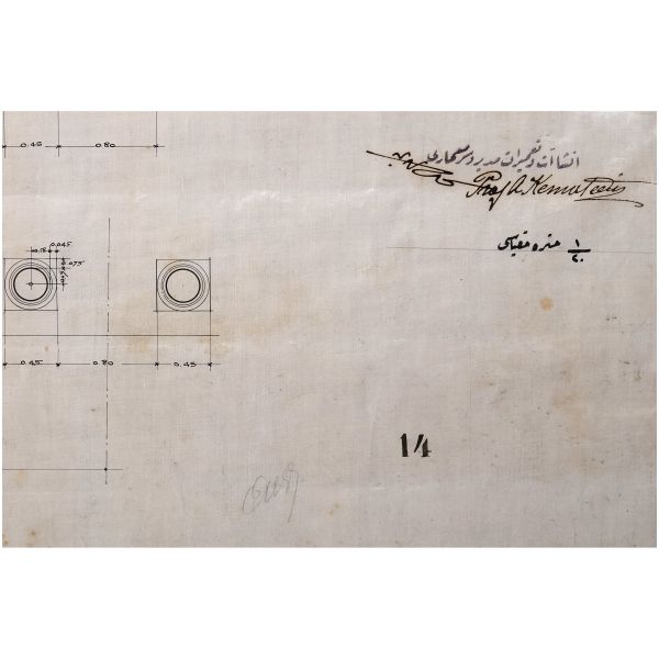 "İnşaat ve Tamirat Müdür ve Sermimarı" mührünün altına Osmanlıca "Kemâleddin" ve yeni harflerle "Prof. A. Kemaleddin" imzası atılmıştır.