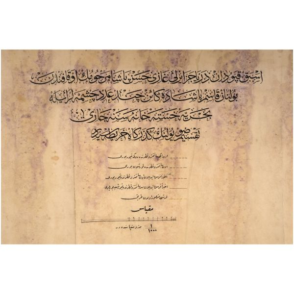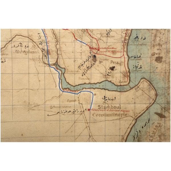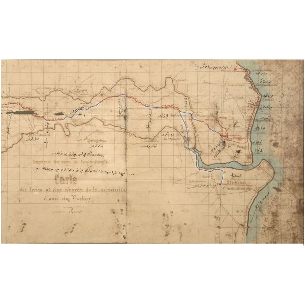 "Esbak-ı Kaptan-ı Derya Cezayirli Gazi Hasan Paşa merhumun evkafından bulunan Kasımpaşa´da kain çend-i adad çeşmeler ile Bahriye Hastahanesi´ne cari Taksim su yolunun güzergah haritasıdır."