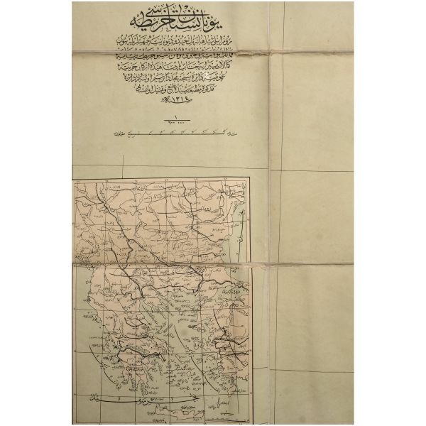 "Rumeli-yi Şahane´nin hudud-i Yunaniye cihetleriyle bütün Memalik-i Yunaniye-i havi olan işbu harita kemalat-i piraye-i cenab-ı padişahide erkan-ı harbiye-i umumiye dairesince müceddiden tersim olunarak daire-i mezkure matbaasında ta´b ve temsil olunmuştur."