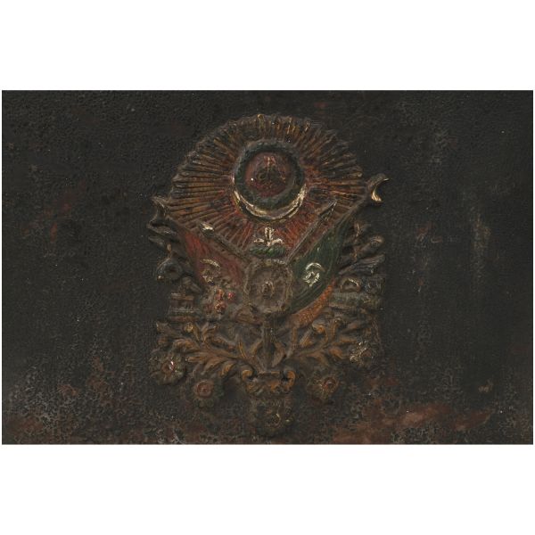 En altta, tarımın ve toprağın üretken gücünün sembolü olan bir pulluk (saban) vardır.