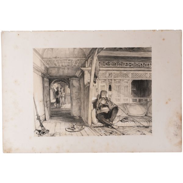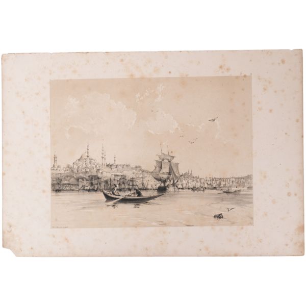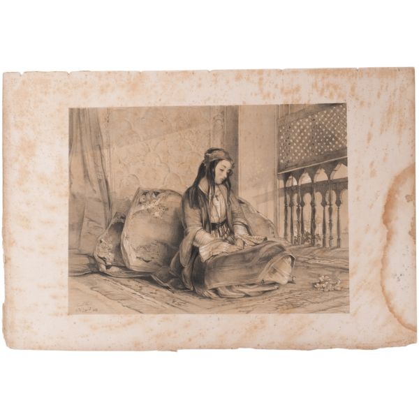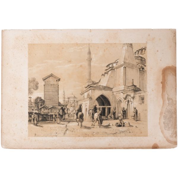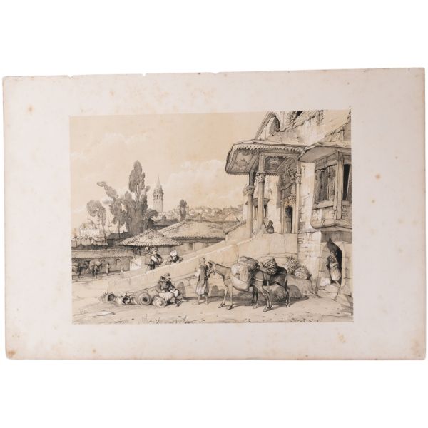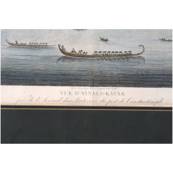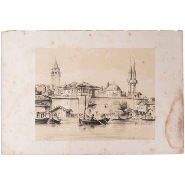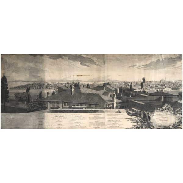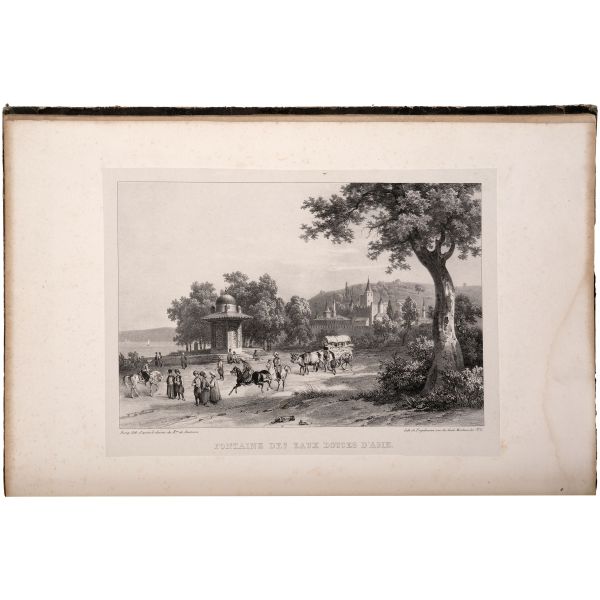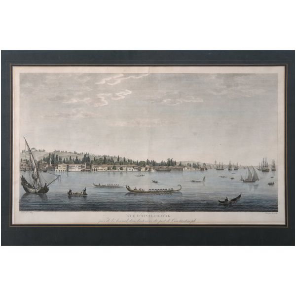 Orhan Pamuk´un "Boğaz manzaralarını konu edinen bütün Batılı ressamlar içerisinde görmenin ve seyretmenin zevklerini bana en çok tattıranı ve bana en inandırıcı geleni Melling´dir." satırlarıyla söz ettiği Antoine Ignace Melling (1763-1831), henüz 21 yaşındayken Rus elçiliğinin yazlık ve kışlık saraylarının dekorasyonu için İstanbul´a getirilmiş, yaptığı çalışmaların başarısı kısa sürede Topkapı Sarayı´na kadar ulaşmıştı. 1804 yılında Sultan III. Selim´in kız kardeşi Hatice Sultan´a ait Neşetâbâd Sarayı´nın onarım ve dekorasyonuyla görevlendirilen ve dedikodulara göre sarayda bulunduğu zaman diliminde Hatice Sultan ile fırtınalı bir aşk yaşayan Melling´in, Hatice Sultan ile Latin harfleriyle Türkçe kaleme alınmış karşılıklı mektupları, günümüzde Fransa´da özel bir koleksiyonda muhafaza edilmektedir. Müzayedeye sunduğumuz bu gravür, Melling´in 1819 yılında yayımlamaya başladığı, Doğu´yla ilgili kitapların en prestijlilerinden biri olan "Pittoresque de Constantinople et des rives du Bosphore" adlı albümden alınmıştır.