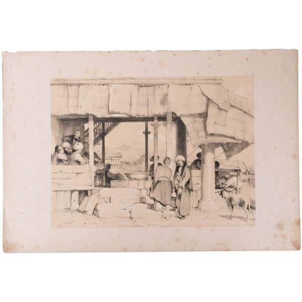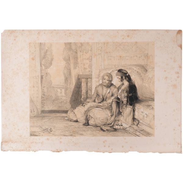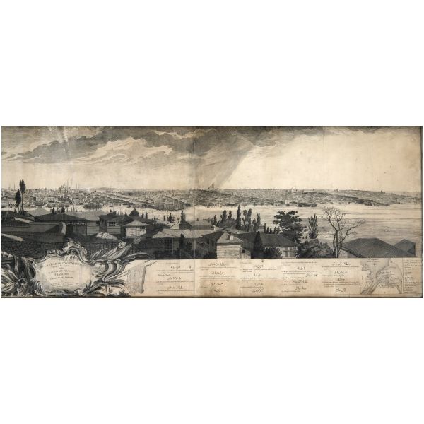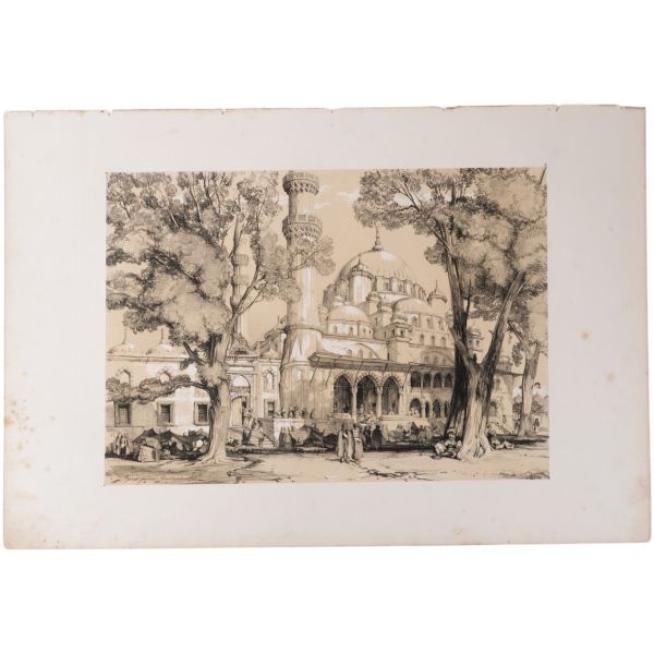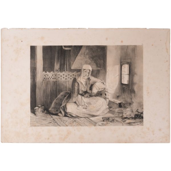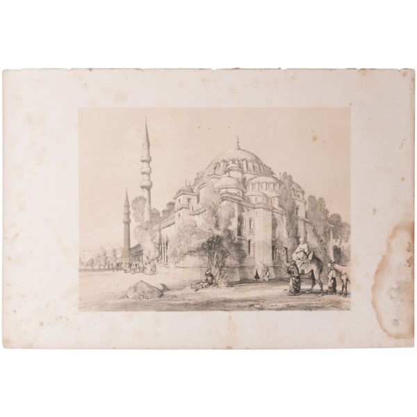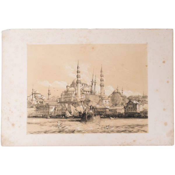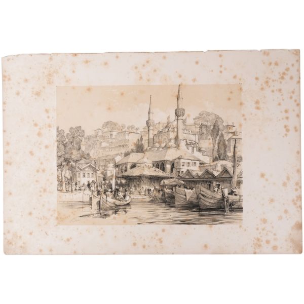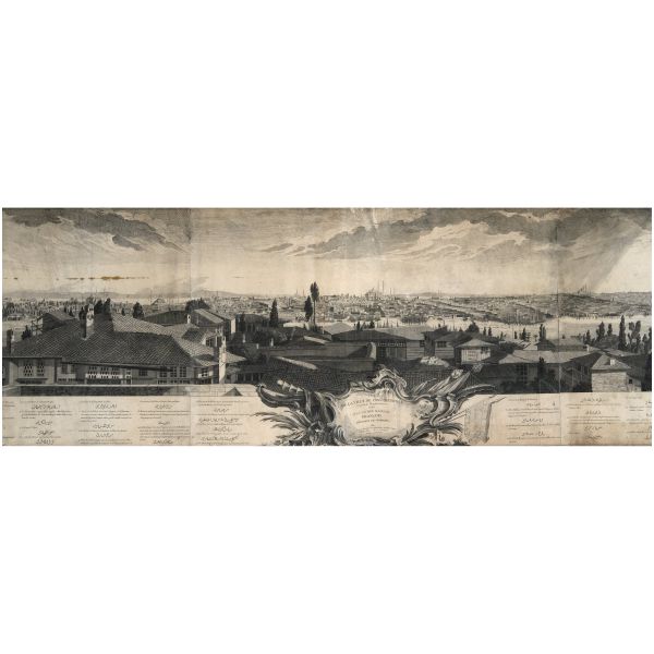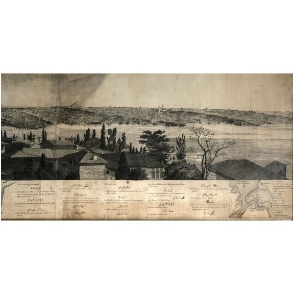 Orhan Pamuk´un "Boğaz manzaralarını konu edinen bütün Batılı ressamlar içerisinde görmenin ve seyretmenin zevklerini bana en çok tattıranı ve bana en inandırıcı geleni Melling´dir." satırlarıyla söz ettiği Antoine Ignace Melling (1763-1831), henüz 21 yaşındayken Rus elçiliğinin yazlık ve kışlık saraylarının dekorasyonu için İstanbul´a getirilmiş, yaptığı çalışmaların başarısı kısa sürede Topkapı Sarayı´na kadar ulaşmıştı. 1804 yılında Sultan III. Selim´in kız kardeşi Hatice Sultan´a ait Neşetâbâd Sarayı´nın onarım ve dekorasyonuyla görevlendirilen ve dedikodulara göre sarayda bulunduğu zaman diliminde Hatice Sultan ile fırtınalı bir aşk yaşayan Melling´in, Hatice Sultan ile Latin harfleriyle Türkçe kaleme alınmış karşılıklı mektupları, günümüzde Fransa´da özel bir koleksiyonda muhafaza edilmektedir. Müzayedeye sunduğumuz bu gravür, Melling´in 1819 yılında yayımlamaya başladığı, Doğu´yla ilgili kitapların en prestijlilerinden biri olan "Pittoresque de Constantinople et des rives du Bosphore" adlı albümden alınmıştır.