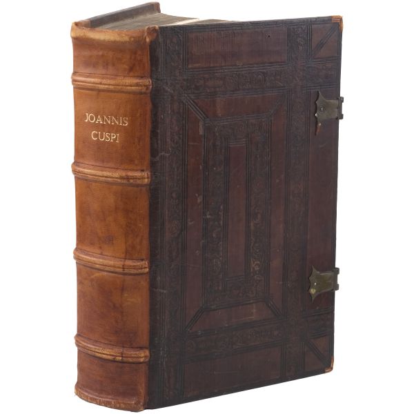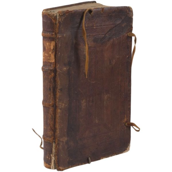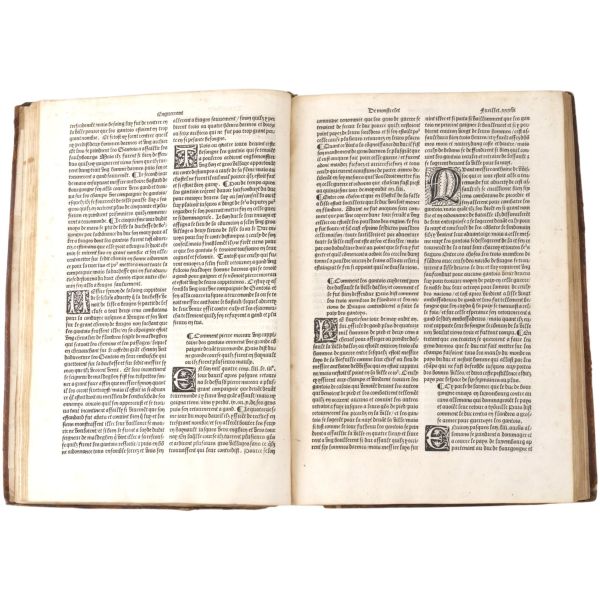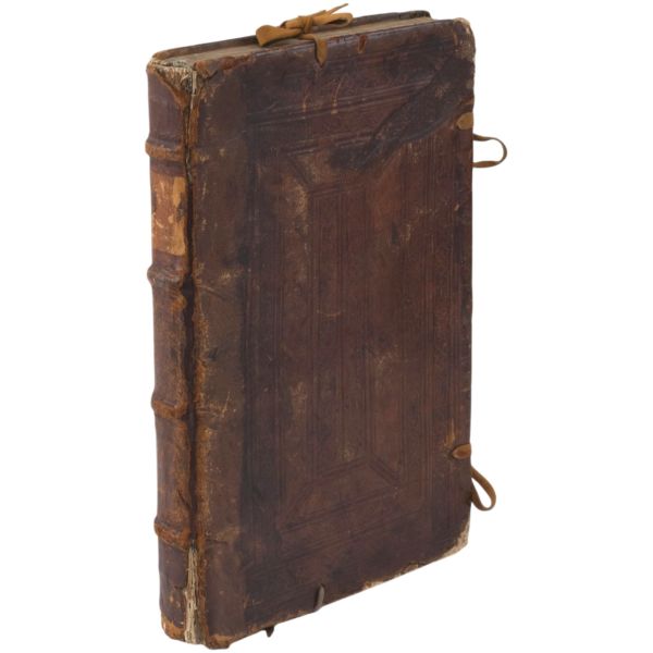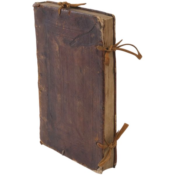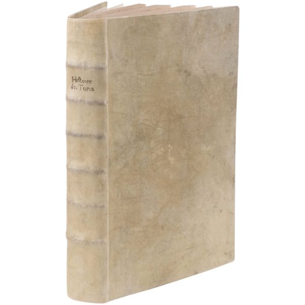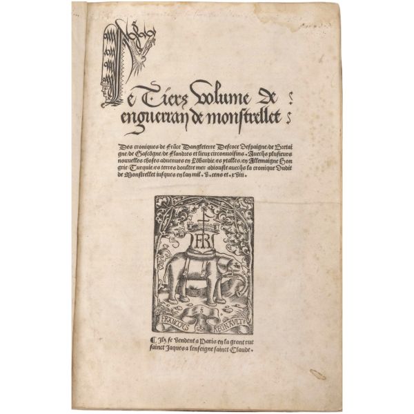 "Le Tiers volume de enguerran de montstrellet: Des croniques de France Dangleterre Descoce Despaigne de Bretaigne de Gascongne de Flandres & lieux circonuoisins. Auecques plusieurs nouuelles choses aduenues en Lombardie es ytalles en Allemaigne Hongrie Turquie es terres doultre mer adiouste Avecques la cronique Dudit de Monstrellet iusques en lan mil. v. cens et.xviii." Sırtı panelli, kapakları gofre tezyinatlı, tümüyle deri dönem cildinde.