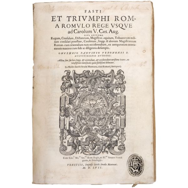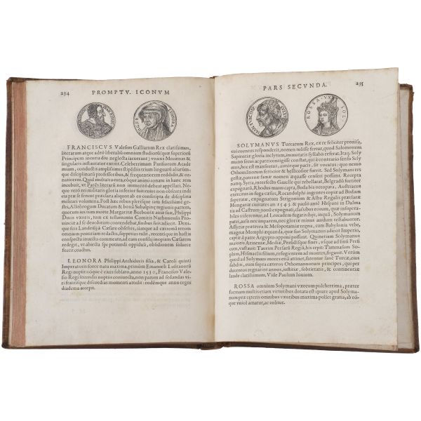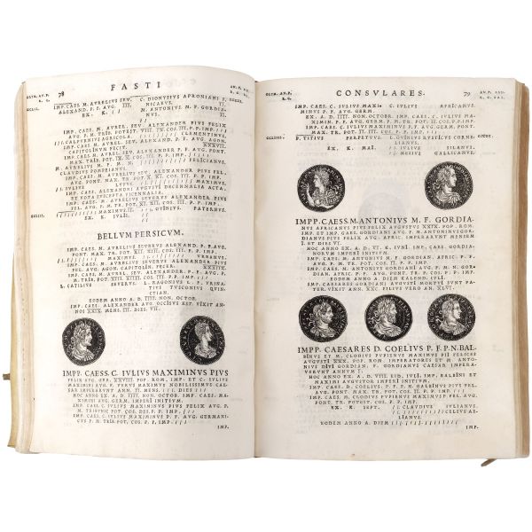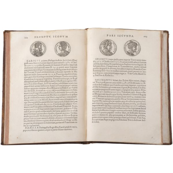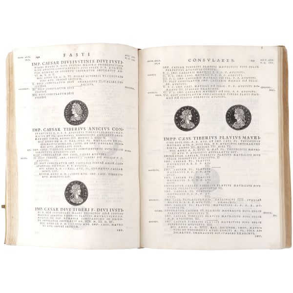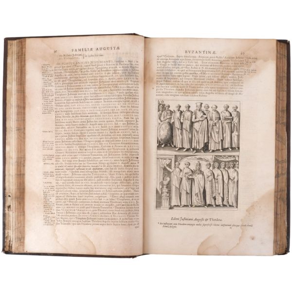 Bizans sikkelerini içeren ilk kitap olma özelliği taşıyan çalışma; nümismatist, antikacı ve sanat tüccarı Jacopo Strada´nın (1507-1588), özel koleksiyonlarda yer alan sikkelerdeki imparator tasvirlerini gravürler halinde bir araya getirmesiyle meydana gelmiştir... Dönemine ait vellum cildinde.