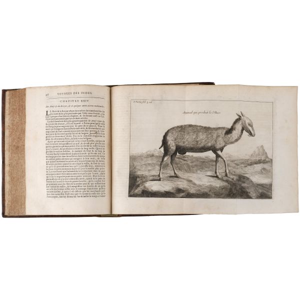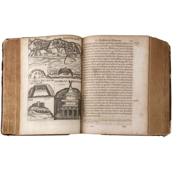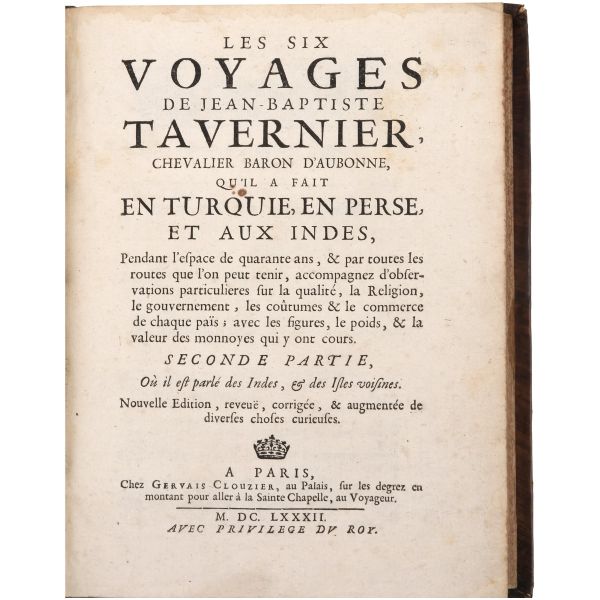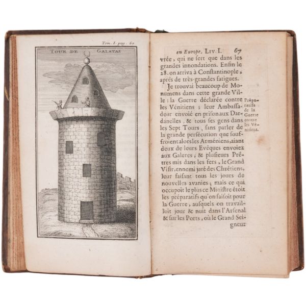 Fransız seyyah Jean-Baptiste Tavernier´in; 1631 yılında çıktığı ve İstanbul´dan İsfahan´a uzanan uzun bir rotayı izlediği Doğu seyahatinin, çok sayıda katlanır levhayla okurlarla buluşan seyahatnamesi... Sırtları panelli, altın yaldız dekor ve başlıklı, tümüyle deri dönem ciltlerinde.