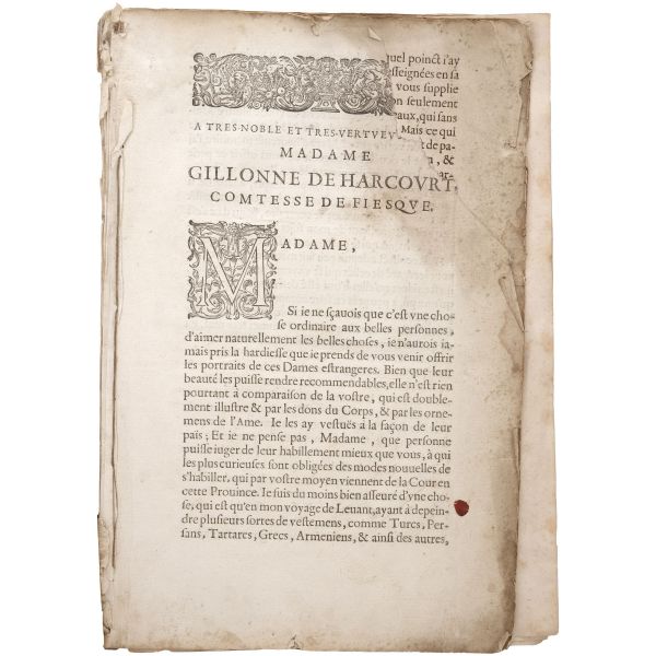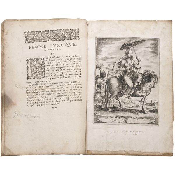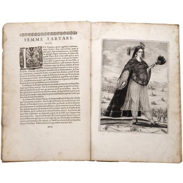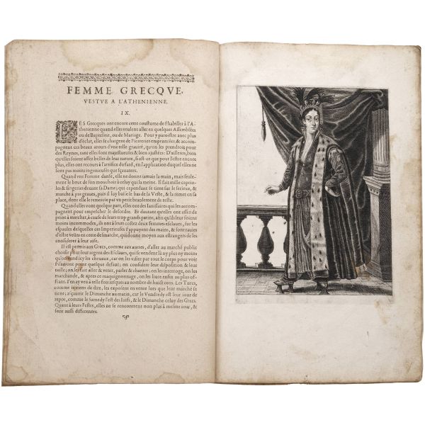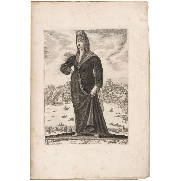 Fransa büyükelçisi Jean de La Haye´ın maiyetine mensup olan Georges de la Chappelle, uzun yıllar yaşadığı İstanbul başta olmak üzere Osmanlı İmparatorluğu hakimiyetindeki birçok bölgeyi gezmiş ve buralarda yaşayan değişik milletlerden birçok kadını resmederek albüm haline getirmiştir. Kitapta, at üzerinde bir Türk kadınını, dansöz kılığında bir Türk kadınını, saraylı bir Yunan kadınını ve bir Tatar kadınını tasvir eden dört adet gravür yer almaktadır. Vellum cildinde. *Kitabın ilk sayfasının sağ üst köşesinde bir yırtık mevcuttur, bazı gravürler eserden çıkarılmıştır.
