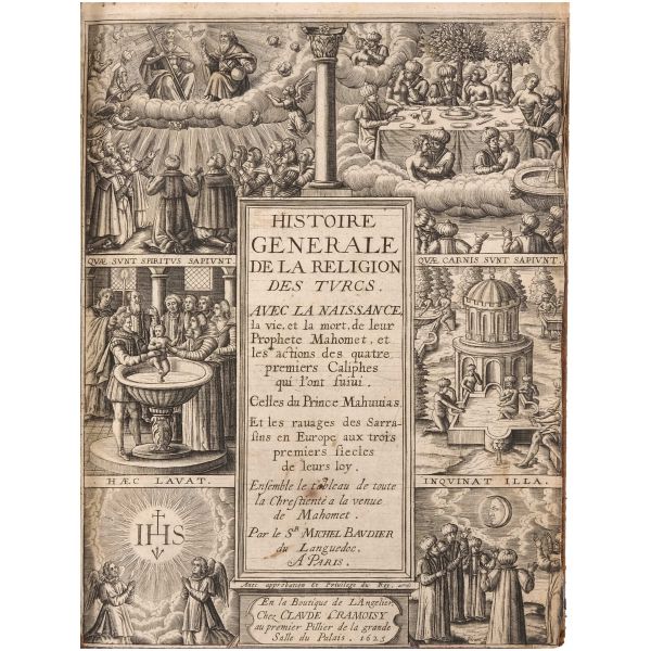 Fransız tarihçi Michel Baudier (1589-1645) tarafından kaleme alınan eser, Hz. Muhammed´in doğumu, yaşamı ve ölümüyle başlayarak dört halife dönemi ve İslam´ın yayılışıyla devam eder. Tüm bu İslam anlatısının odak noktasında ise, İslam´ı bağımsız bir din olarak değil, Avrupa´nın en büyük tehdidi olan "Türklerin dini" olarak gören yazarın yaşadığı yüzyılda bu dinin en büyük temsilcisi olan Türkler yer alır. Kitapta ayrıca, Hz. Muhammed´in Batılı bakış açısıyla, hayali bir gravürüne de yer verilmiştir. Sırtı panelli, altın yaldız dekor ve başlıklı, tümüyle deri dönem cildinde.