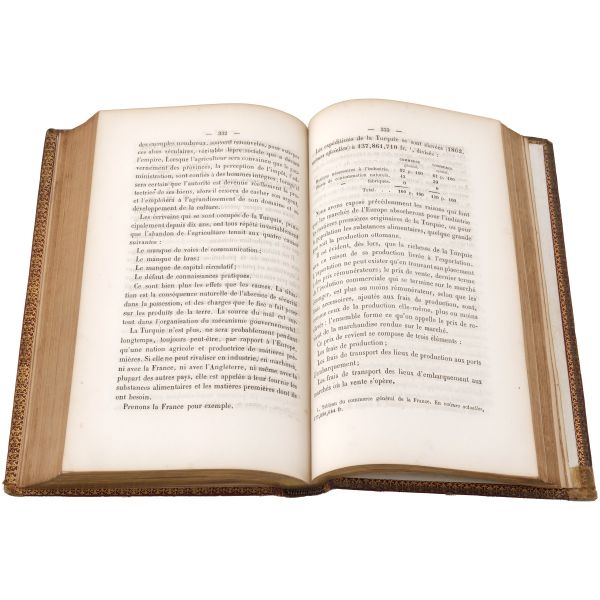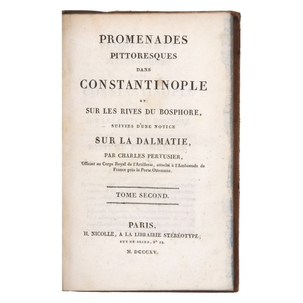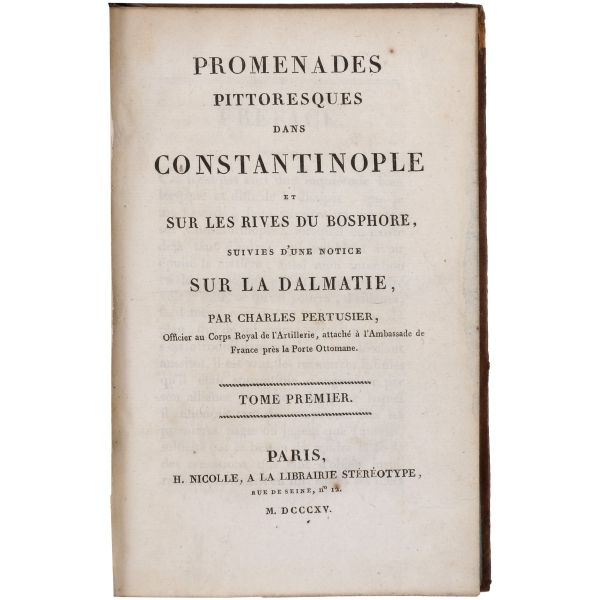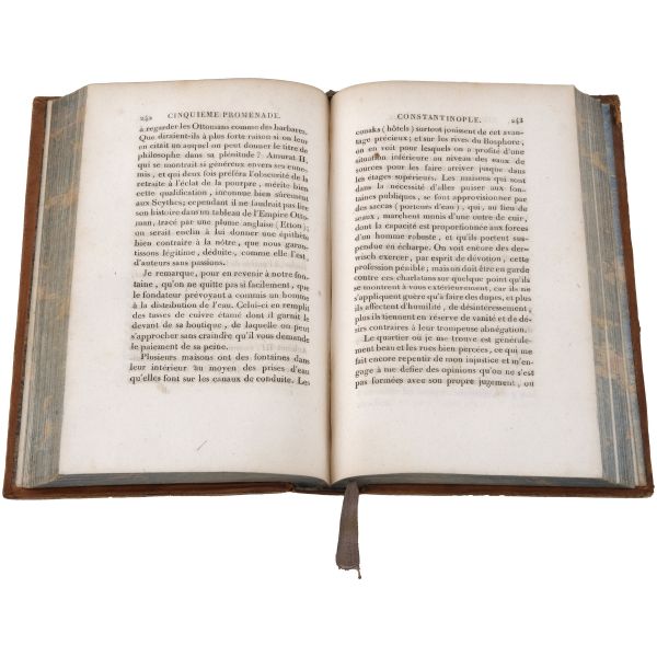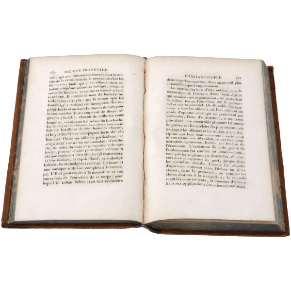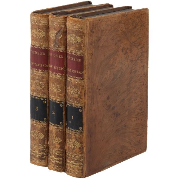 Osmanlı Devleti’nde büyükelçi olarak görev yapan General Andreossy´nin emir subayı olarak birkaç yıl boyunca İstanbul’da bulunan yazarın, İstanbul ve Boğaz kıyıları üzerine izlenimleri… Sırtları altın yaldız dekor ve başlıklı, iç kapakları ve sayfa kenarları ebru desenli deri dönem ciltlerinde.