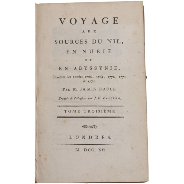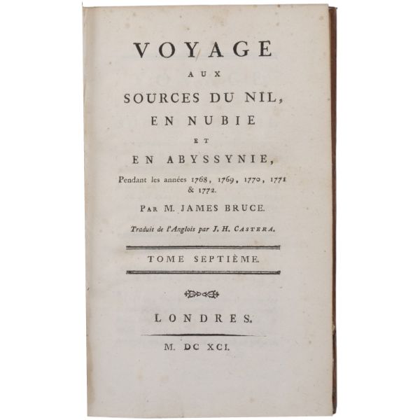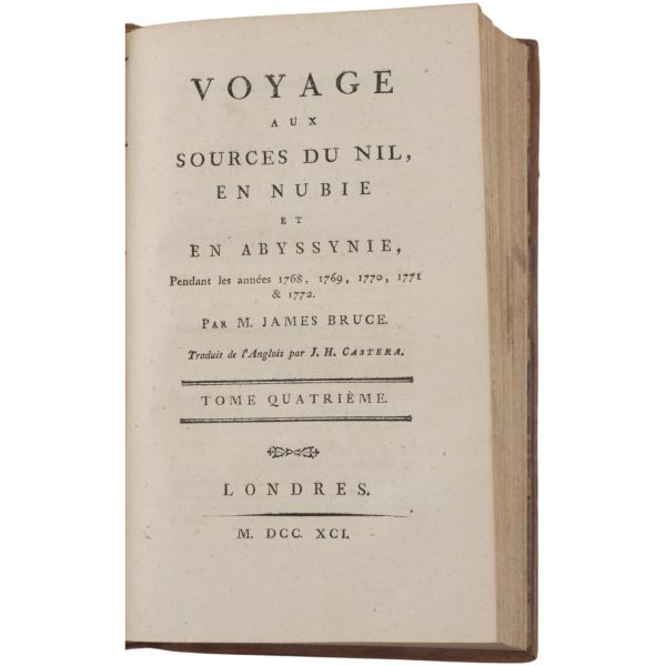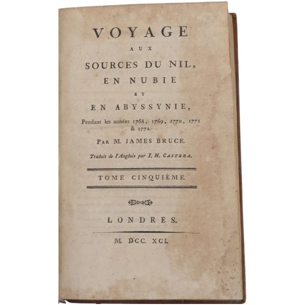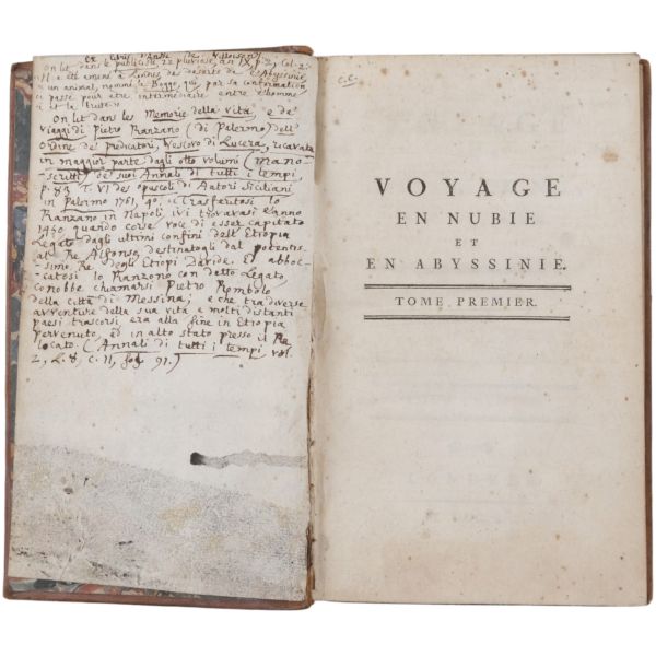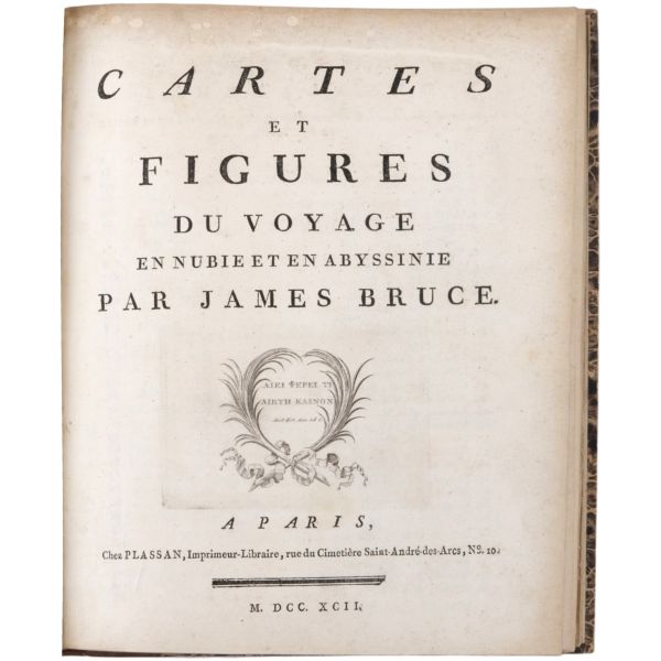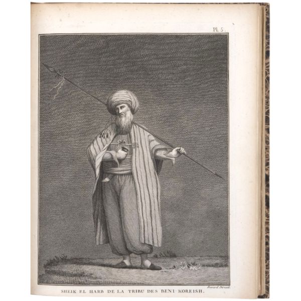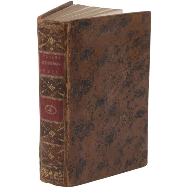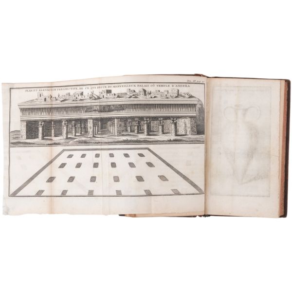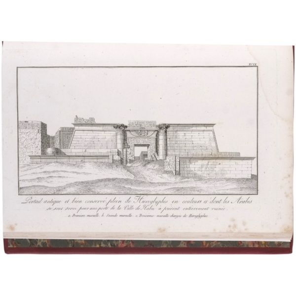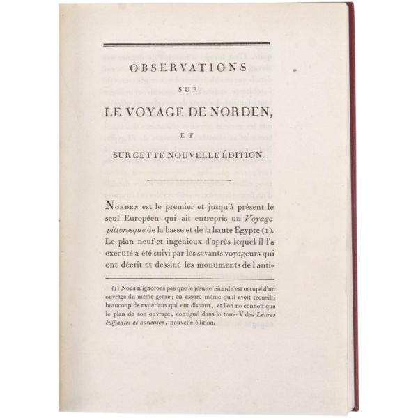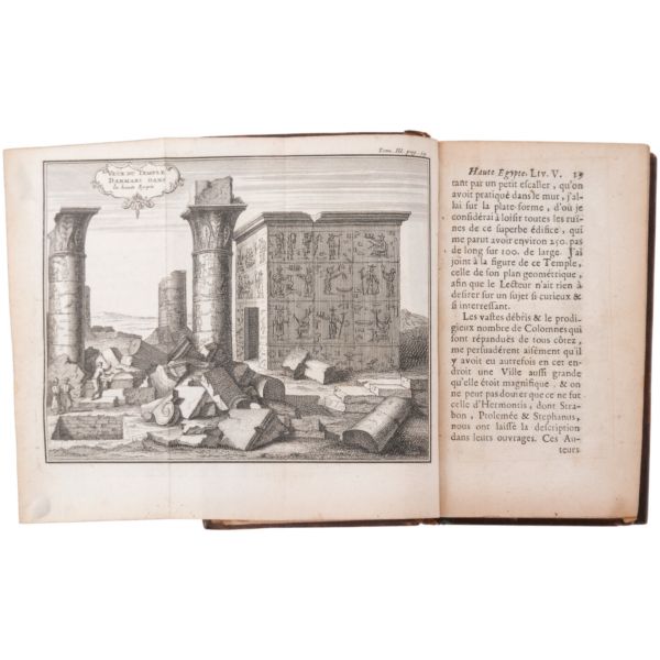 Danimarkalı denizci, haritacı ve arkeoloji araştırmacısı Frederic Louis Norden´in, oldukça geniş kapsamlı ve çok zengin görsellerle süslü, 1737-1738 tarihli Mısır yolculuğu… V. Frederik’in emriyle Danimarka Kraliyet Bilimler ve Edebiyat Akademisi tarafından yayımlanan ve Mısır anıtlarının ilk gerçekçi çizimlerinin yer aldığı bu çok değerli seyahatname, bugün bile 19. ve 20. yüzyılda yapılan kazılarından önceki Mısır anıtlarının görünümü için birincil kaynak olmaya devam etmektedir. Sırtları altın yaldız dekor ve başlıklı, yeni yapım deri ciltlerinde. İç kapakları ebru desenlidir.