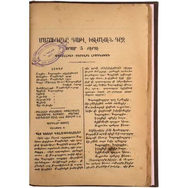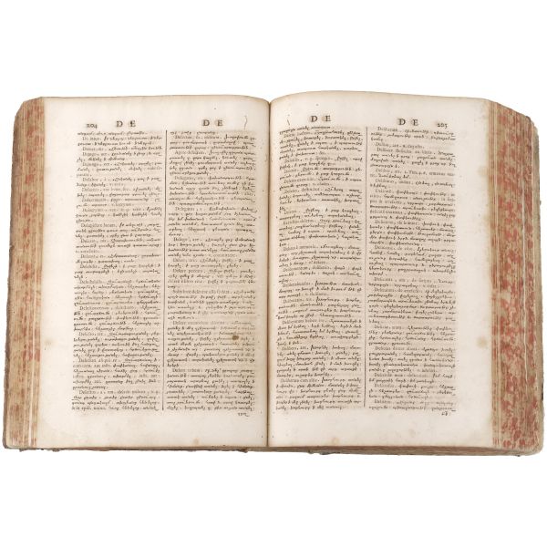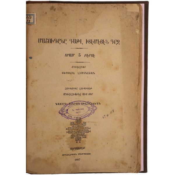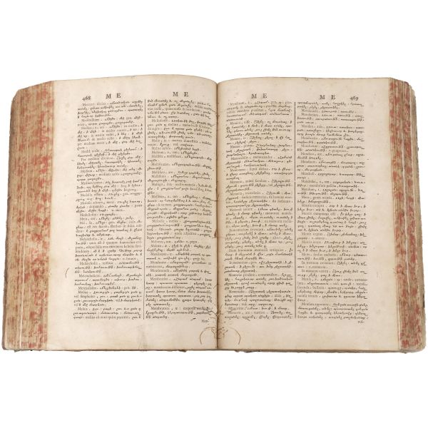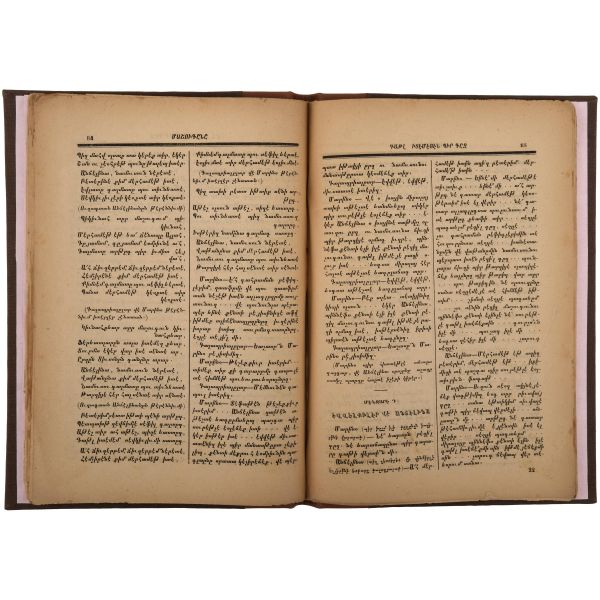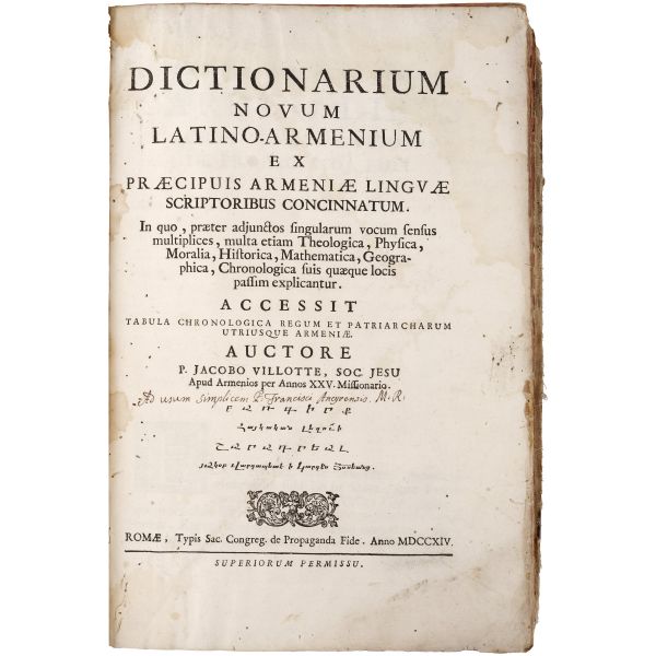 Hagop Vartabed tarafından hazırlananan sözlüğün yazıldığı dönemde Roma, Ermeni Kilisesini katolikleştirmek istediğinden bu tarz kültür çalışmalarını propaganda öğrencilerini eğitmek için sıkça kullanmıştır. Bez sırtlı, vellum ciltli. Sayfa kenarları kırmızı boyalıdır. *Kurt yenikleri mevcuttur.
