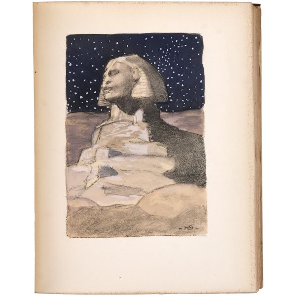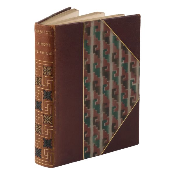 Pierre Loti´nin deniz subayı olarak bulunduğu Mısır´da kaleme aldığı makalelerden meydana gelen, Henri Deluermoz´un çok sayıda renkli ve renksiz illüstrasyonunu barındıran eseri... 121´den 1120´ye kadar numaralandırılan özel seri baskının 240 numaralı nüshası... Dış ve iç kapakları dekoratif motifli, sırtı gofre çiçek dekorlu ve altın yaldız başlıklı, tümüyle deri koleksiyoner cildinde. Orijinal kapakları muhafaza edilerek ciltlenmiştir. Kitabın başında kendisini Mısır´da karşılayan Mustafa Kâmil´in 1908 yılındaki vefatı üzerine ilave ettiği matbu ithaf yer almaktadır.