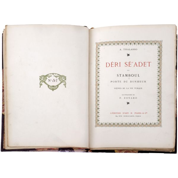 Rum asıllı Osmanlı aydını, gazeteci, edebiyatçı ve sanat tarihçisi Adolphe Thalasso´nun, İstanbul’un sosyo-kültürel yaşamını, tarihini, geleneklerini ve günlük hayatını Batılı okuyuculara sunduğu edebi–sanatsal seyahatnamesinin, sınırlı sayıda basılmış lüks edisyonu... Osmanlı saray ressamı Fausto Zonaro´nun 26 tam sayfa, 23 metin içi olmak üzere toplam 49 renkli resmi eşliğinde... El yapımı vellum kâğıdına basılmış 258 kopyadan (43-300) 208 numaralı nüsha. Sırtı panelli ve altın yaldız başlıklı, kapakları ve iç kapakları ebru desenli deri cildinde.
