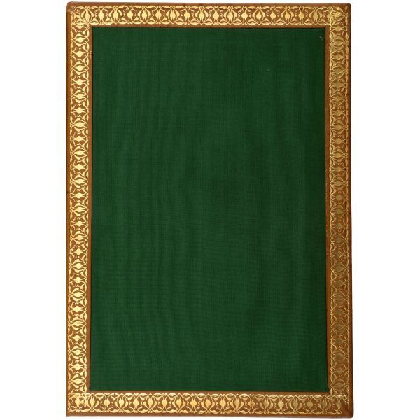 Sırtı panelli ve altın yaldız çerçeveli, ön ve arka kapağı şemseli ve altın yaldız dekorlu, iç kapakları yeşil kadifeyle kaplanmış ve altın yaldız çerçeveyle dekore edilmiş; bu bölümlerin arkasına çift sayfa ebru ilave edilmiştir. Sayfa kenarları altın yaldızlıdır.