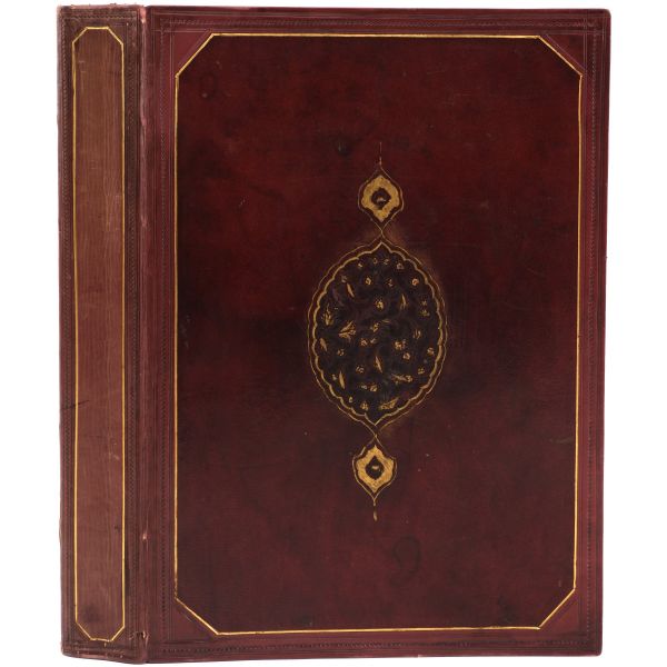Sırtı panelli ve altın yaldız çerçeveli, tümüyle deri dönem cildinde...