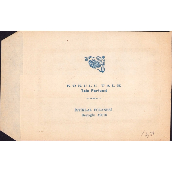 "Sayın Bay, Uzun zamandan beri memleketimizde haklı bir şöhret yapmış olan GÖZEN Kolonya ve Losyonları bu defa yepyeni bir ambalaj ve bu ambalaja lâyık Avrupanın en büyük esans fabrikalarından hususi surette ithal ettiğimiz esanslarla imâl edilen kolonya ve losyonlarla karşınıza çıkmaktadır. Kolonya tenekelerimiz mağazanızı ve evinizi bir tablo gibi süsliyecek, içindeki Losyon ve Kolonyalar da en müşkülpesent müşterilerinizi memnun edecek kalitededir. (...) Mamullerimize karşı göstereceğiniz yakın alâkaya şimdiden teşekkür eder siparişlerinize intizaren emirlerinizi bekleriz. Saygılarımızla. Gözen Müessesesi"