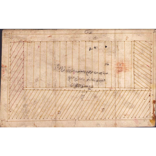 İnce bir mukavva üzerine eşit aralıklarla gerilmiş ipliklerden ibâret olan ve yazılacak kâğıdın altına konulup üstüne elle bastırılmak sûretiyle kâğıda çıkan çizgiler üzerinde düzgün yazı yazılmasını sağlayan âlettir. Sağ alt tarafında bir kırık bulunmaktadır.