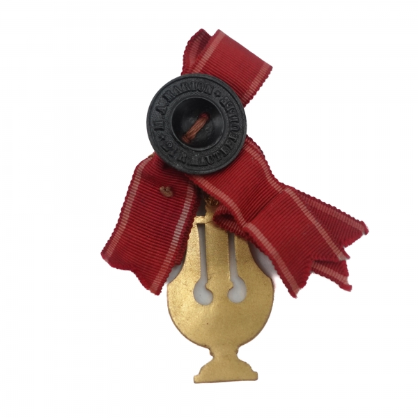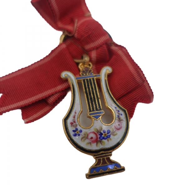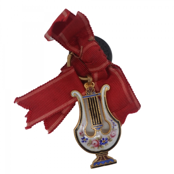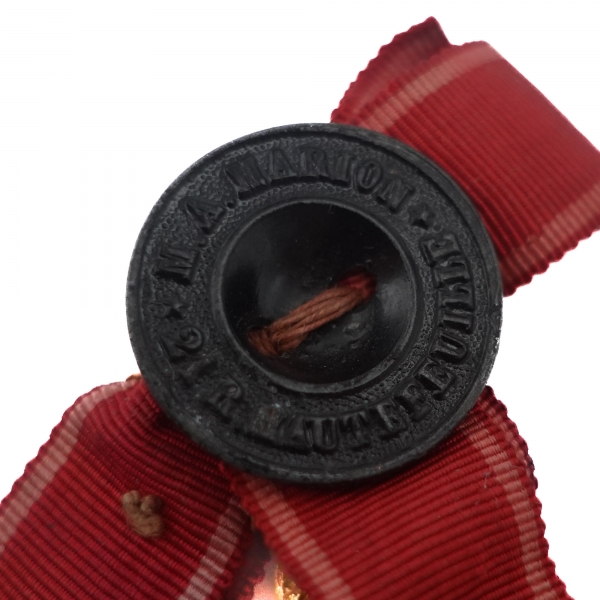 Lir formunda, mine işçilikli rozet ve "M. A. Marion - 21 R. Hautefeuille" ibareli düğme, rozet 3x1,5 cm, düğme (çap) 1,5 cm...
