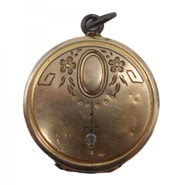 20. yüzyıl başlarından gövdesi kalem işçilikli ve pırlanta taşlı, açılır kapaklı, fotoğraf muhafazalı kolye ucu, çap 2,5 cm...